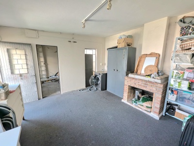 Fondo verde con habitaciones con hogar, y baño ( posible barbacoa)